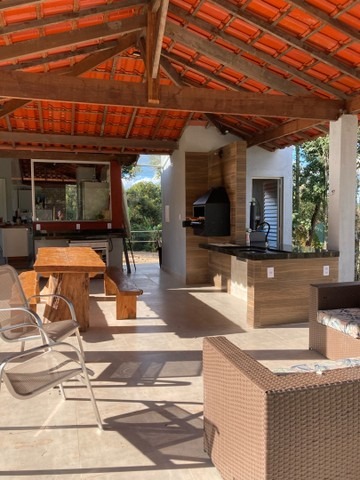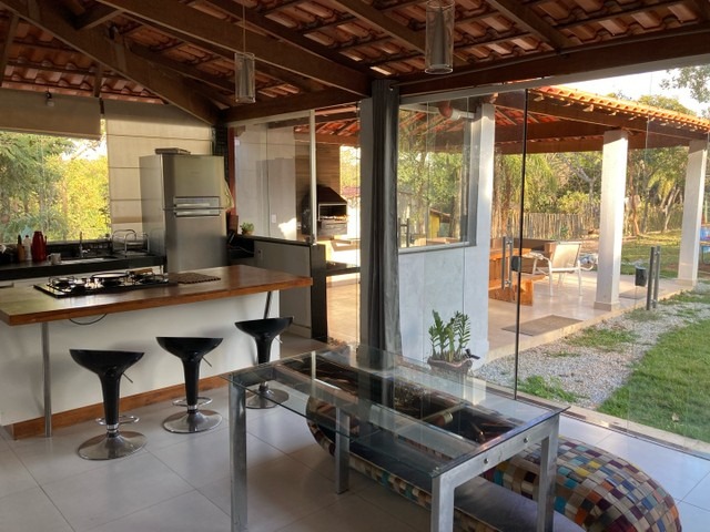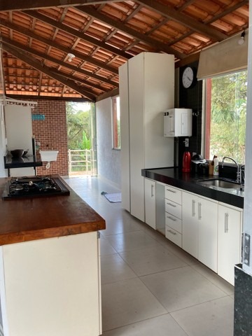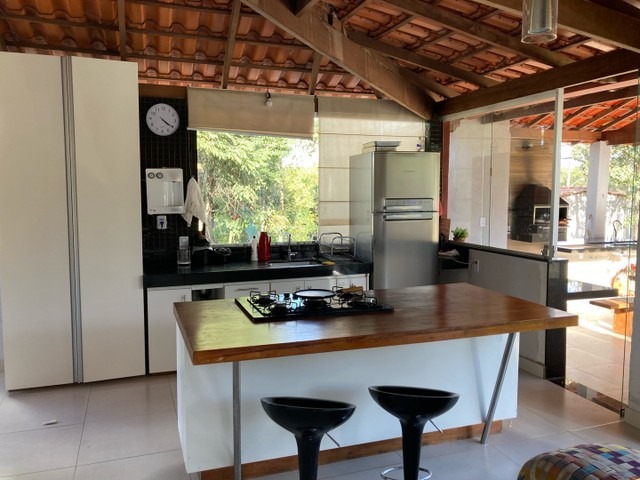 - Área gourmet com forno à lenha, churrasqueira, bancada (ilha) com pia e espaço para cooktop